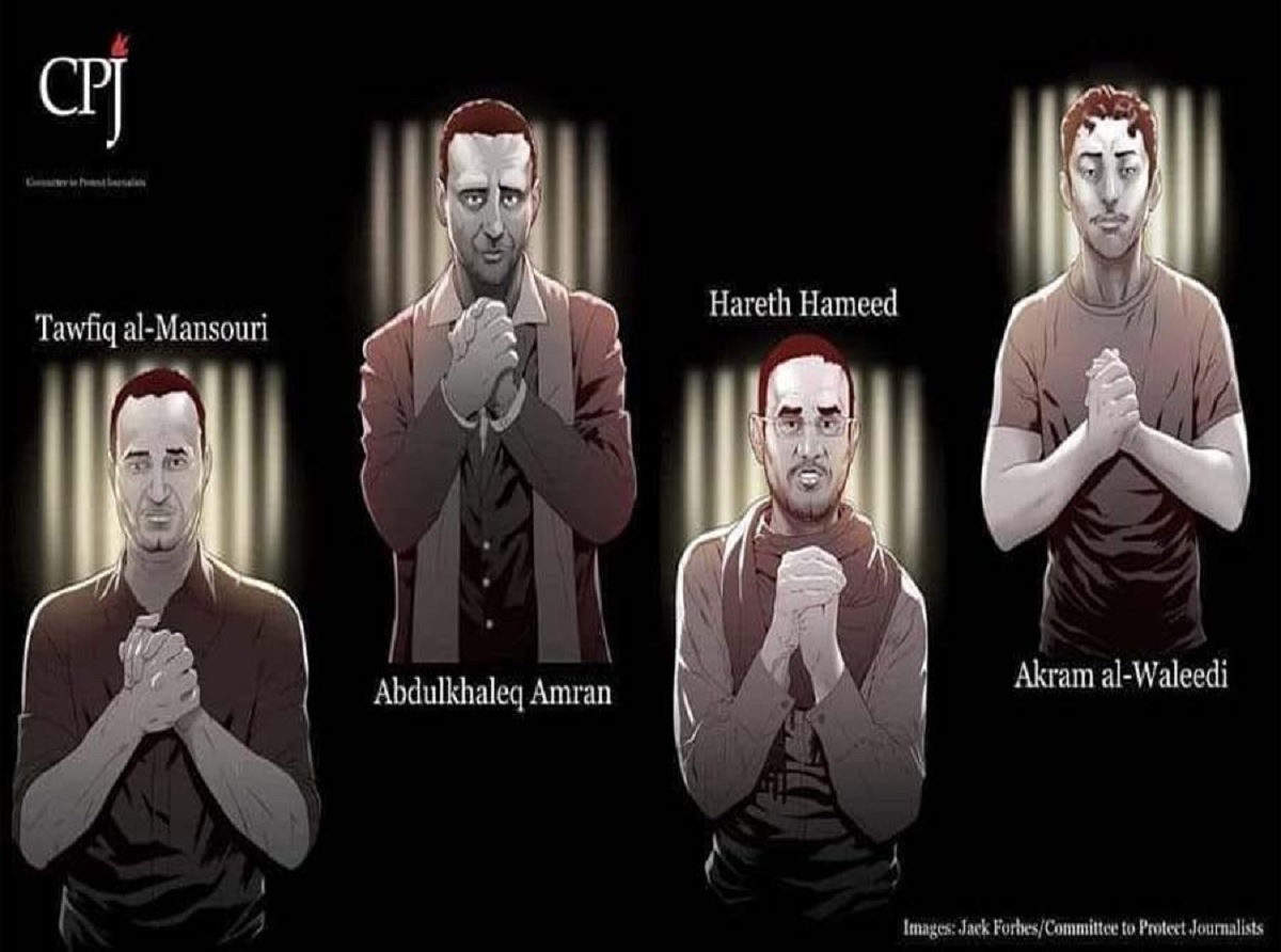 ويواجه أربعة صحفيين يمنيين محتجزين لدى الميليشيا في صنعاء منذ 2015، هم "عبدالخالق عمران وأكرم الوليدي وحارث حميد وتوفيق المنصوري"، خطر الموت على خلفية عملهم الصحفي.